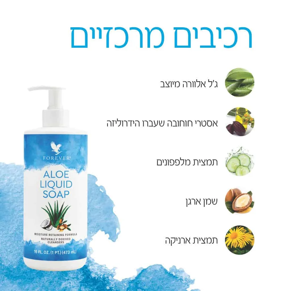סבון נוזלי בעל מרקם פנינה, מרגיע עור מגורה ומעשיר אותו בלחות תוך כדי ניקוי. הפורמולה מבוססת על ג''ל האלוורה הייחודי של Forever בשילוב אידיאלי של שמן ארגן ושמנים אחרים המספקים חווית ניקוי עדינה לכל הגוף ולכל המשפחה.